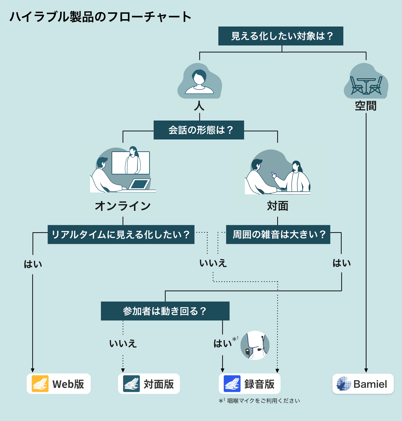 ハイラブルは、リアルタイムで話し合いを自動的に見える化する技術でこの問題を解決します。