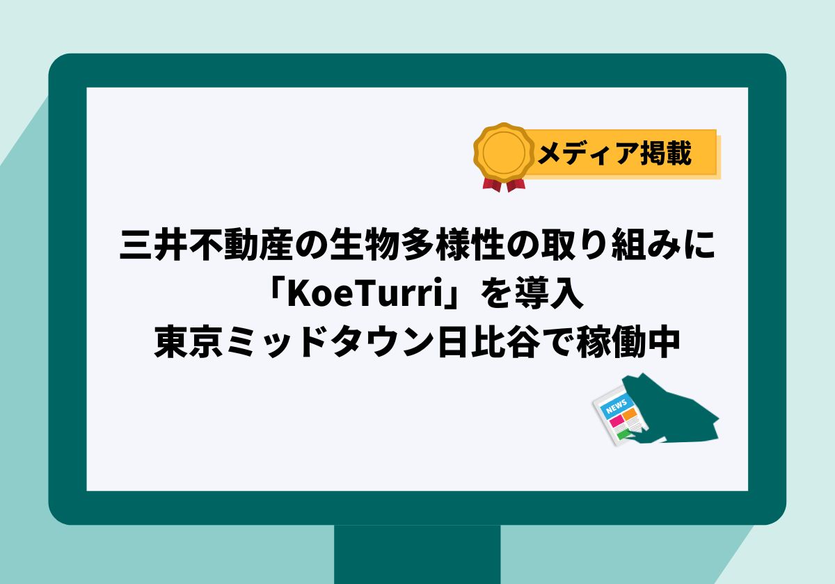 ハイラブルの生物多様性を音で計測する新サービス「KoeTurri(コエチュリー)」が、三井不動産が進める東京ミッドタウン日比谷での生物多様性の取り組み(ソフト施策)の施策の一環として、導入されました。 「KoeTurri」は、東京ミッドタウン日比谷に来街するお客様への生態系の魅力発信や生きもの観察イベントなど、多様な施策に利用されます。 詳細は以下のリンク先をご覧ください。