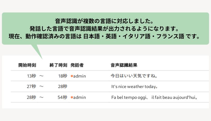 ● 音声認識が複数の言語に対応しました。発話した言語で音声認識結果が出力されるようになります